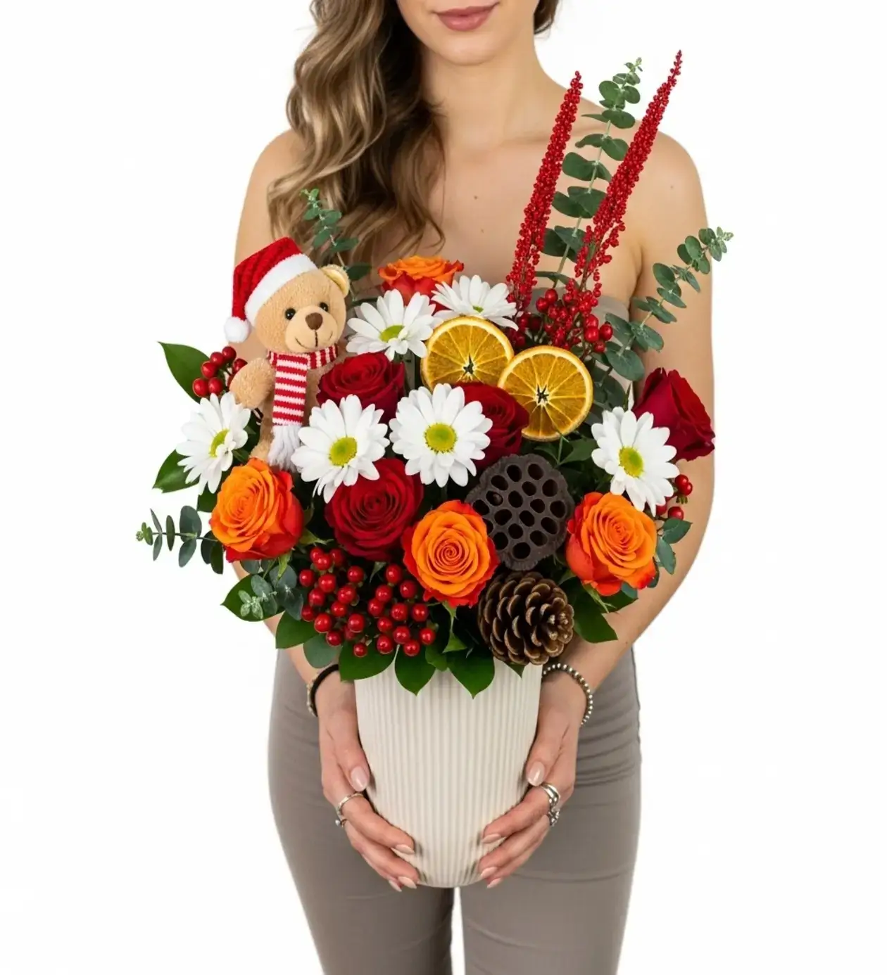 Yılbaşı Hediyesi: Peluş Ayıcık & Kokinalı Yeni Yıl Çiçek Aranjmanı