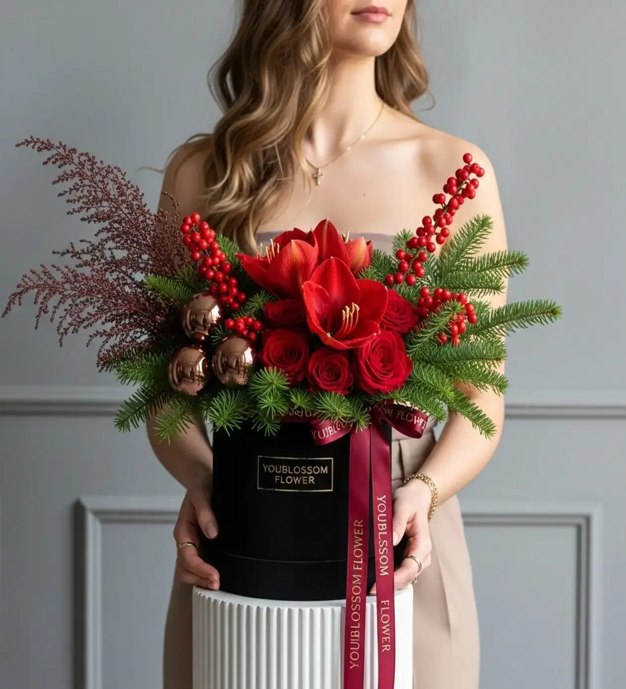 Yeni Yıl Çiçeği: Kırmızı Kutu Ilex Yılbaşı Aranjmanı