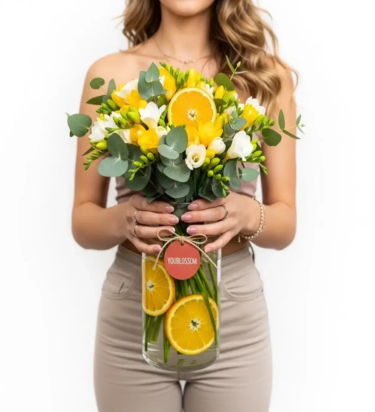 Citrus Harmony Portakal Dilimli Vazoda Renkli Frezya Çiçeği