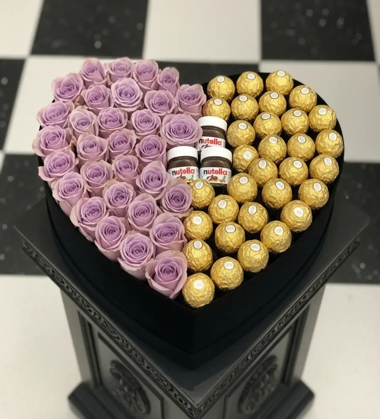 ✨ Lila güllerin zarafetini, çikolata ve Nutella’nın tatlılığıyla birleştirin. Şimdi sipariş verin, sevdiklerinizi mutlu edin!