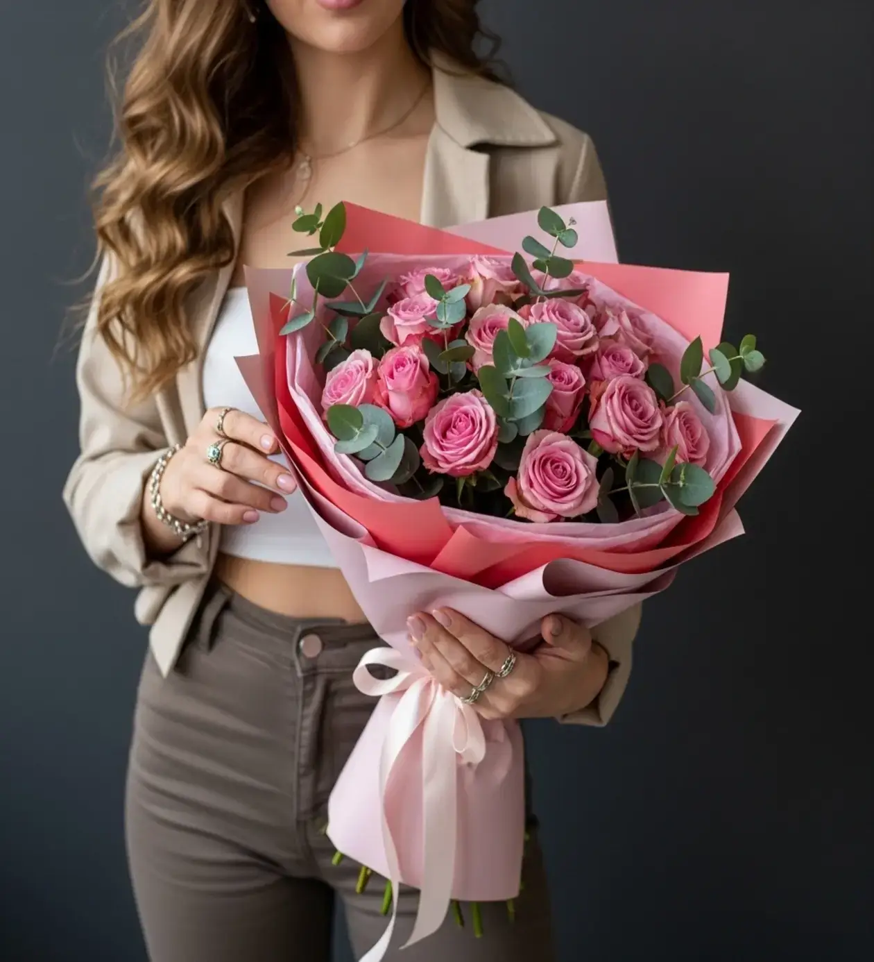 Tamamı taze ve canlı pembe güllerden oluşan bu zarif buket, saygı, sevgi ve teşekkürün en güzel ifadesidir.