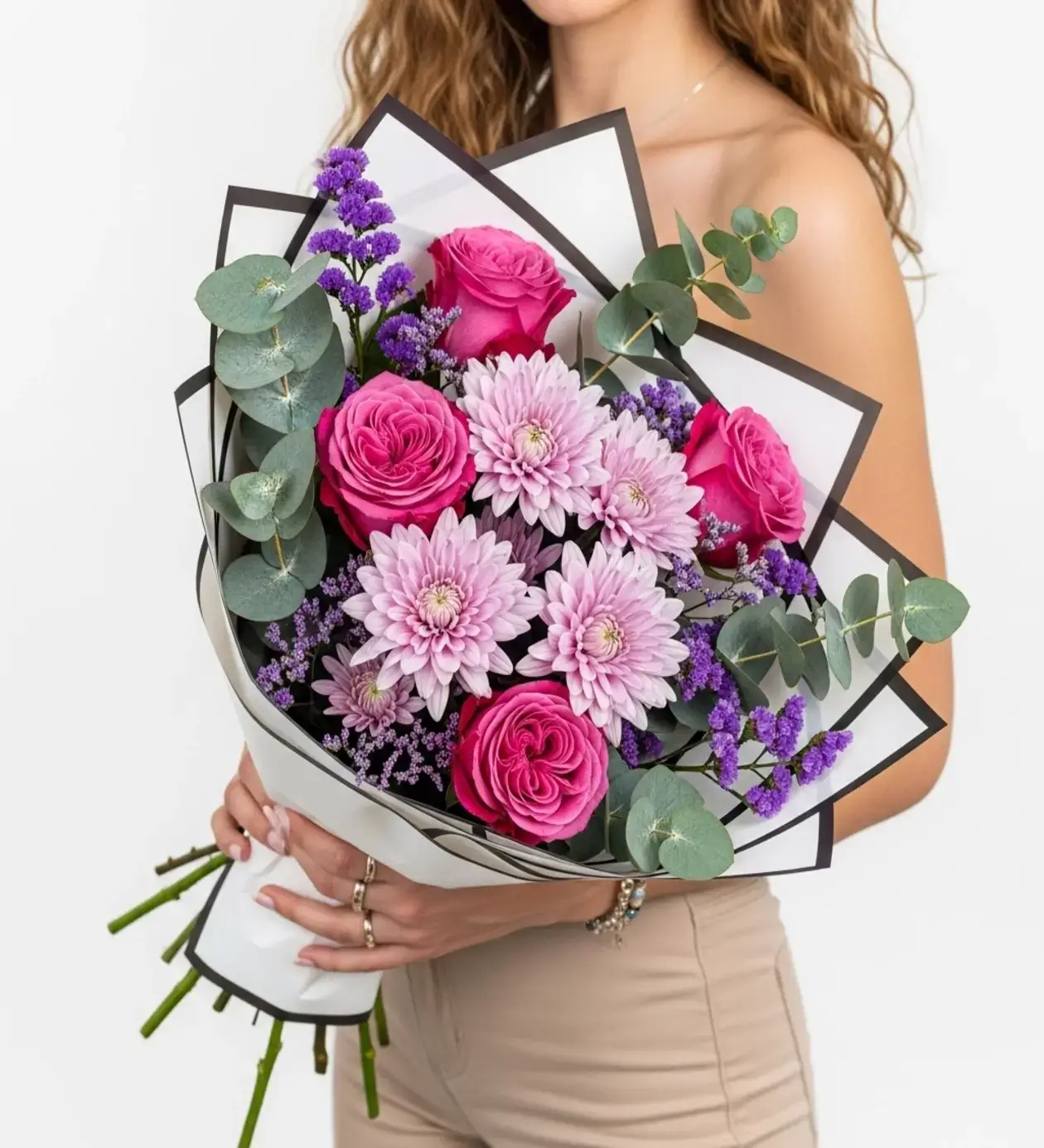 Violet Harmony Bouquet, zarif renk geçişleriyle modern çiçek tasarımının en seçkin örneklerinden biridir.