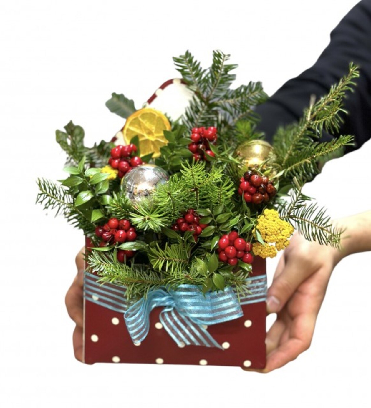 Yeni Yıl Umudu Kokina Aranjmanı içerisinde kokina, kurutulmus limon ve yılbaşı bibloları mevcut olup uzman çiçek tasarım ekibimizin sizler için yakınlarınızın özel günlerinde harika bir hediye fırsatı sunmaktadır.